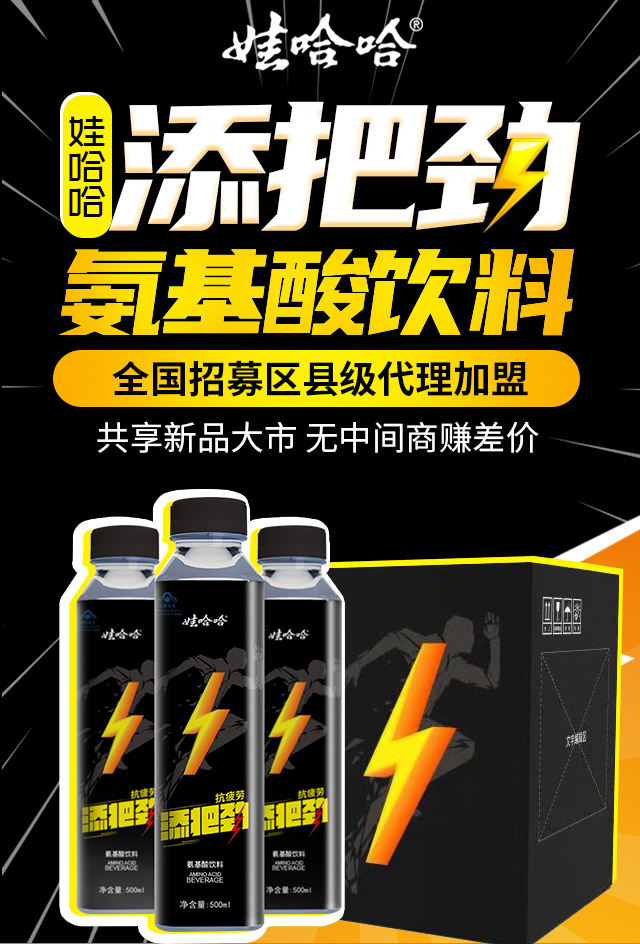 娃哈哈老字号大品牌,全渠道支持,保姆式服务,让您安心放心。娃哈哈添把劲氨基酸饮料新品目前诚邀全国各区代理,邀您携手合作共赢!全程扶持,手把手教学,让您轻松上手,开创新事业。