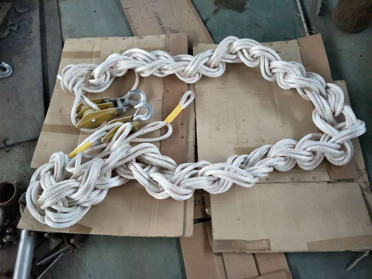 绝缘滑轮组由绝缘绳和绝缘滑车组合而成。滑轮的个数根据载荷的大小确定,有单轮、双轮、三轮和四轮四种。在带电作业中广泛应用。