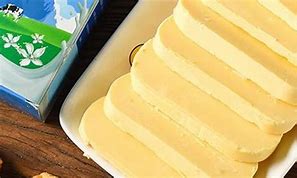 黄油又叫乳脂、白脱油,是将牛奶中的稀奶油和脱脂乳分离后,使稀奶油成熟并经搅拌而成的。黄油与奶油的区别在于成分,黄油的脂肪含量高。黄油色泽浅黄,质地均匀、细腻,切面无水分渗出,气味芬芳。