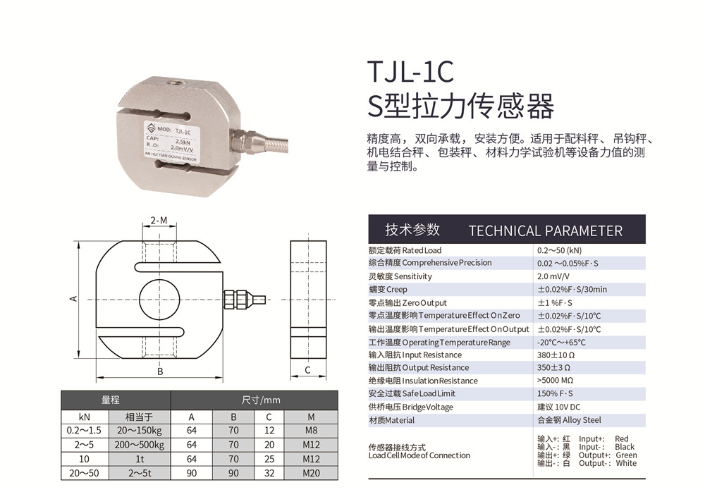 天光传感器S型拉压力称重传感器拉力试验机传感器TJL-1C