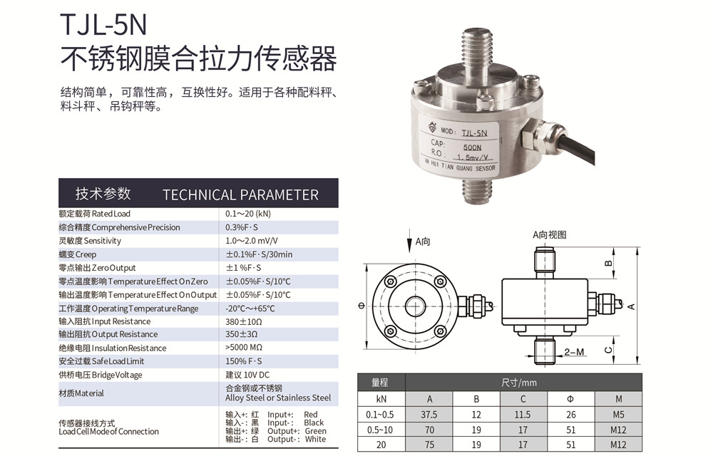 天光传感器不锈钢拉力传感器配料秤料斗秤测力TJL-5N