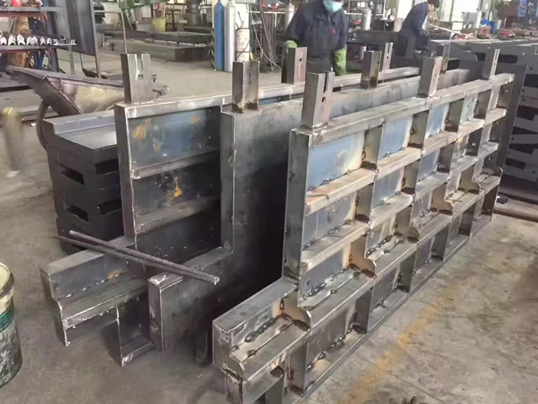 挡渣板模具是分为钢材质和塑料材质两种的,从重量上来看是塑料模具是轻于钢模具的,所以说塑料模具是使用时也会比钢模具方便一些,并且塑料材质自身就比较光滑,并其全部都是机械化制作,并没有钢模具的焊接、打磨等多个步骤,所以模具的成型速度也是非常快的,挡渣板模具使用广泛,可长期使用,为避免损坏模具,影响模具使用寿命,需要浇筑的挡渣板较多,混凝土较少。因此,如果使用塑料模具,只需将铁路挡渣板模具和将要使用的生产工具运输到施工现场即可。