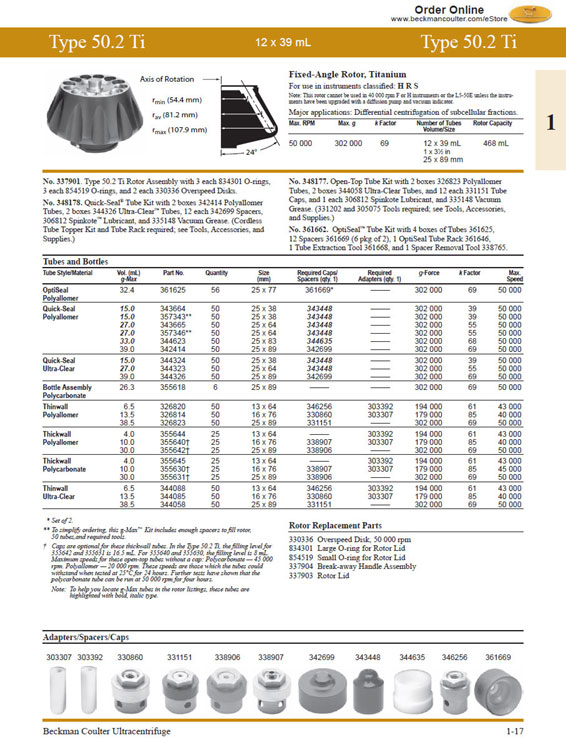 贝克曼超速离心机转头Type 50.2 Ti定角转头货号337901二手九成新