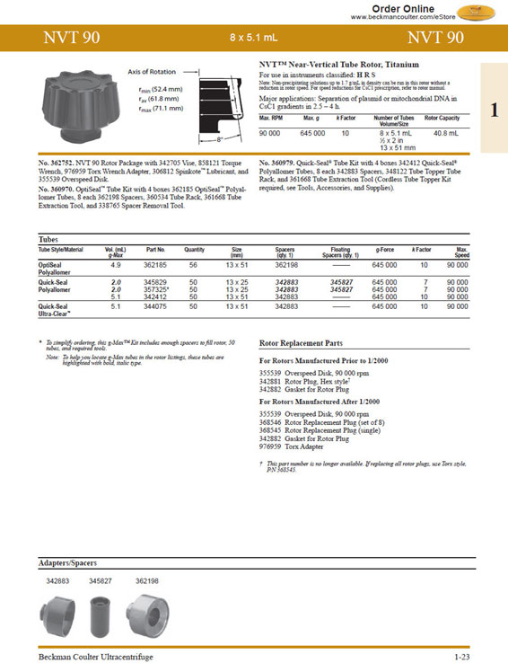 贝克曼超速离心机近垂直转头NVT90货号362752全新现货特价:贝克曼超速离心机近垂直转头NVT90货号362752全新现货特价
