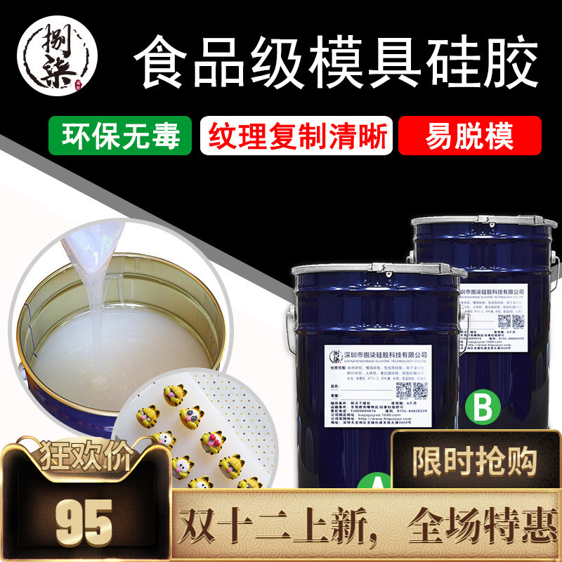 食品级硅胶,双组分食品级硅胶。由两部分组成:A组分是硅胶,B组分是固化剂;两组分按1:1的比例混合配比,是一款通过了欧洲食品级认证的硅胶。