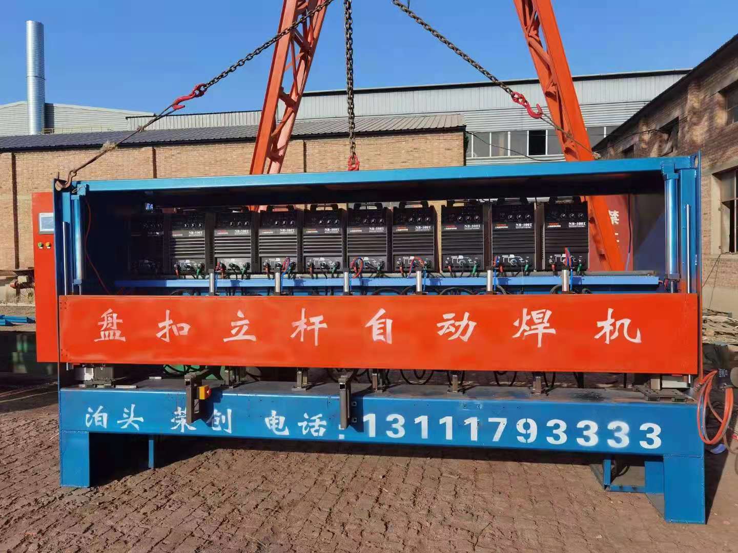 盘扣立杆自动焊机 是比较好的待焊立杆由气缸自动送至焊接区,尾顶进给使之与主轴相联并保持合适的松紧度,双层送料板的夹紧板退开后退回原位,焊接区中间的上下气缸同时自动下压和上升用滚轮把立杆夹持住,同时遮挡罩在气缸的推拉下盖住焊接区。由主轴控制盘扣立杆自动焊机上需点焊的盘扣位置的变换,可依焊接需要来设定变换的时间。焊接时间:在无预热的闪光焊时,焊接时间视焊件的截面及选用的功率而定。当电流密度较小时,焊接时间即延长,通常约为5秒左右一个。在焊接期间,焊工又可对另一立杆实施组装,能有效利用空闲时间。