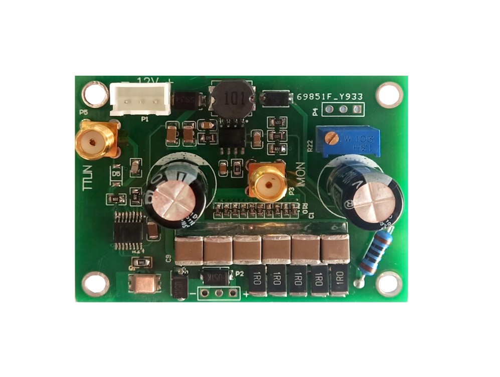7.为保证低分布电感,激光器应直接焊接在激光器的输出接口上,接线足够短(<1cm)。若接线过长将导致波形变坏,例如边沿变差,过冲振铃等不良现象。