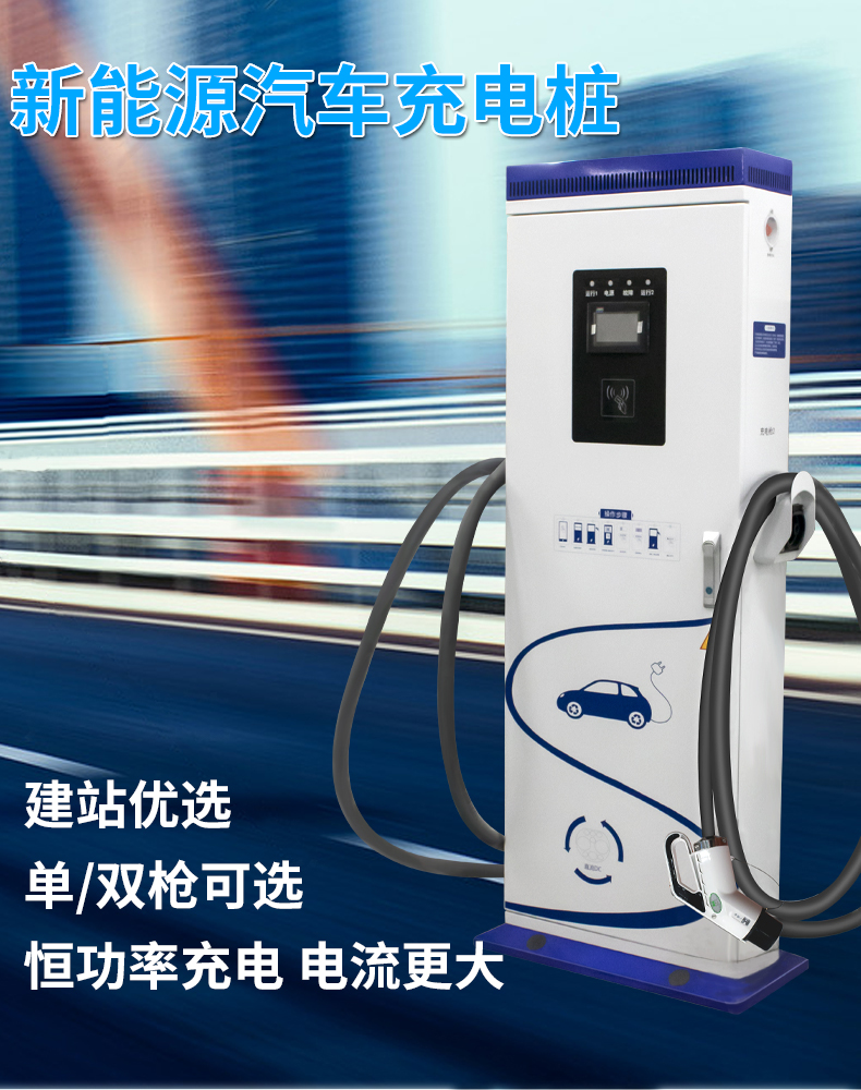 充电桩其功能类似于加油站里面的加油机,可以固定在地面或墙壁,安装于公共建筑(公共楼宇、商场、公共停车场等)和居民小区停车场或充电站内,可以根据不同的电压等级为各种型号的电动汽车充电。充电桩的输入端与交流电网直接连接,输出端都装有充电插头用于为电动汽车充电。充电桩一般提供常规充电和快速充电两种充电方式,人们可以使用特定的充电卡在充电桩提供的人机交互操作界面上刷卡使用,进行相应的充电方式、充电时间、费用数据打印等操作,充电桩显示屏能显示充电量、费用、充电时间等数据。