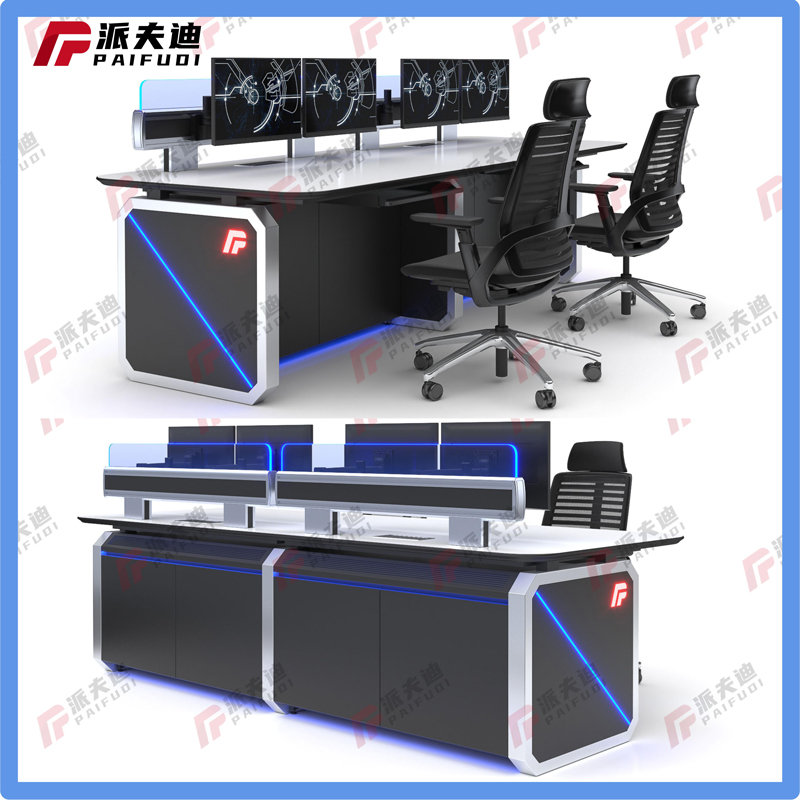 ⑦柜体上部(平台式除外)首层为倾斜面,与台面夹角为105度,从第二层起与台面夹角为90度。有利于操作员在长时间目视画面时眼睛不疲劳;