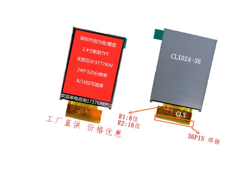 产品特点:240*320点阵,支持RGB接口,36PIN,可配电阻TP(价格另算),工作温度范围有宽温-20--+70,有8位与16位可选,订购时,请备注.本公司自有品牌,有专业的研发,生产,销售,售后团队,提供专业技术指导。