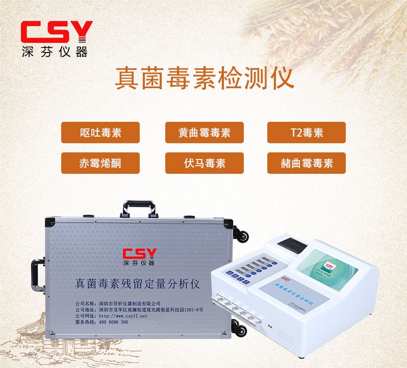 玉米购销霉菌毒素快速化验仪CSY-YG701深芬仪器生产的玉米购销霉菌毒素快速化验仪可快速准确测定出玉米、大米大麦、小麦、谷物麸皮、小麦次粉、米糠、菜籽粕、棉粕、花生粕、豆粕及饲料和饲料原料中的呕吐毒素、黄曲霉毒素B1、玉米赤霉烯酮等霉菌毒素。玉米购销霉菌毒素快速化验仪配置齐全,所需设备、试剂、耗材一站式提供,开箱即检广泛应用于粮油监测中心、粮油饲料生产加工。