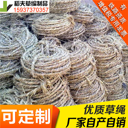 草绳又叫稻草绳是一种以稻草秸秆为原料经过专用的草绳机加工而成的草制品。草绳以廉价及对环境无污染的优势,在市场中一些行业中有着不可代替的地位,其主要应用于园林绿化业中对树木的保护;对管道工程施工时对管道的一些保护及对一些企业产品的外在的保护。因为草绳是以水稻秸秆为原料,水稻秸秆本身就有很好的减震性,所以经过加工后的草绳在缠绕到物品上之后就有更好的保护性。 草绳的制作简单,实用用途广泛,而且在园林绿化中也有着非常重要的作用,是现在园林中最长使用到的保护产品之一。草绳是由稻草加工而成,价格低廉,对环境无污染,是一种属于绿色环保的农业加工产品。草绳的用途很广主要用于:瓷器厂,砖瓦厂,预制件机械厂,园林公司,建筑工地等。由于草绳的用途越来越广,市场中对草绳的需求也不断的扩大,现在已经成了农民一项创收的主要途径。