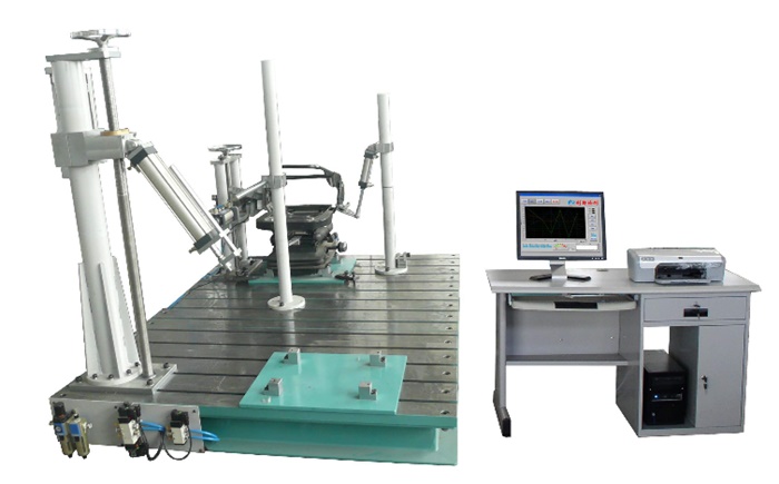 室外健身器材综合耐久性试验机适用于GB19272-2011《室外健身器材的安全通用要求》标准种相关室外健身器材,例如漫步机、蹬力器、健骑机(骑马机)、摇摇马、扭腰器、太极揉推器、上肢牵引器、大转轮、平步机、秋千、跷跷杆(板)、划船器、坐推器、坐拉器、健身车、椭圆机、钟摆机等室外健身器材类产品的疲劳耐久性测试;并可通过改装夹具可进行室外健身器材的稳定性试验和静态力测试。