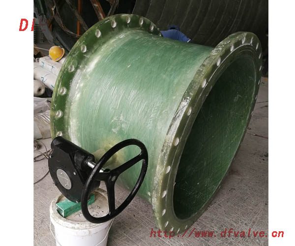 玻璃钢蝶阀把主要易腐蚀部件如阀体、阀板等设计为玻璃钢材料,玻璃钢部件所使用的纤维、纤维织物与树脂类型由蝶阀的工作条件确定。玻璃钢阀体的主体形状为直管状,它的结构特点是以一段玻璃钢直管为基础,然后再增加法兰、密封环制造而成。该种蝶阀具有耐腐蚀能力强、成本低廉、制造工艺简单灵活等特点。