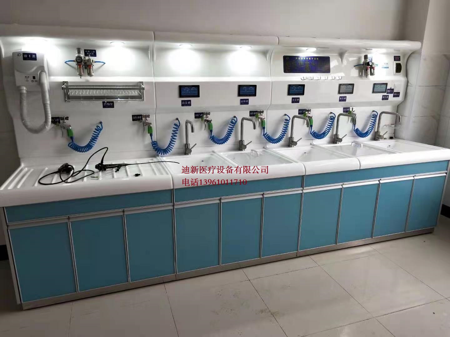内窥镜清洗工作站是我公司根据卫生部《内镜清洗技术操作规范(2016年版)》的要求,结合国外先进技术及工艺,产品采用人性化及标准化设计、选材精良考究、配置灵活性强、自动化程度高、操作简洁方便、使用安全可靠、性价比高、清洗效果显著,广泛适合国内不同规模医疗机构开展内镜及其它器械清洗工作,是一种为内镜诊疗工作中对内镜清洗的设备。它由台面/清洗槽,柜体/功能背板,豪华内镜干燥保养台,自动灌流器,空压机,高压水枪,专用水龙头,内镜吹干机,灌流器自动接头,水源中心控制系统,中心电源控制系统,中心气体处理器,过滤水装置,专用方槽盖,内镜侧漏系统等,可选配追溯系统,超声波清洗机,纯水机,内镜转运车等。