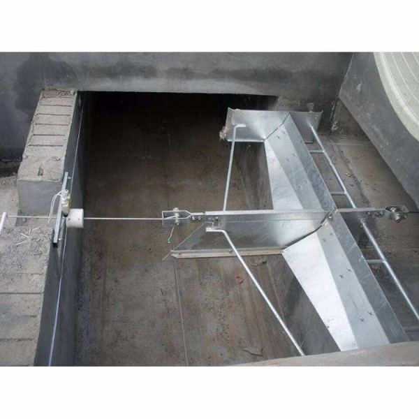 不锈钢V板刮粪机为不锈钢材料建造,两侧向 倾斜,正有一导尿管,管径114mm,高度150mm,导尿沟之前端至后端的出口应用有20-1500px以上之落差,以液之流出。由钢索盘拉引之拉挽式机械刮粪板,双板式双排条状猪舍,其构造由马达、不锈钢索胶盘、除粪刮板、迴转轮、自动停止开关等五部分组成。不锈钢V板刮粪机的刮粪板满载之猪粪为100-150kg,约相当于200-300头肉猪之排粪量,每天刮粪次数依养猪头数多寡及栋数的分配而定,但每天至少刮粪1-3次,降低舍内氨气生成及环境优点,创造 佳育成效率。