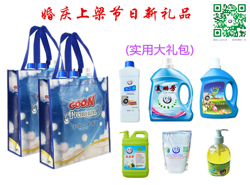 新礼品 由 美琳芳 (老外) 企业精心打造的高品质新颖礼品,以洗衣液、洗洁净、洗手液、F201去油灵等组合的现代时尚精品。其中“高纯多效衣物洗涤剂”为设计专利 所选材料全部采用洗衣液专用原料并配入国际公认的安全绿色环保APG糖苷中性配方、让洗涤更环保 、无磷无铝更绿色。 具有低粘、低泡沫控制技术、令洗涤更易漂清.节水省力。添加高能活性因子、渗透纤维内部.轻松瓦解顽固污渍。 日用礼品是针对单位节日婚庆上梁配组而成的、是亲朋好友回馈赠品的时尚日用品、家家必备、人人喜爱。公司配备了高中低档次的产品、可选单品、双组、三合一等供你自由选择,也可根据自己的喜好选择组合。