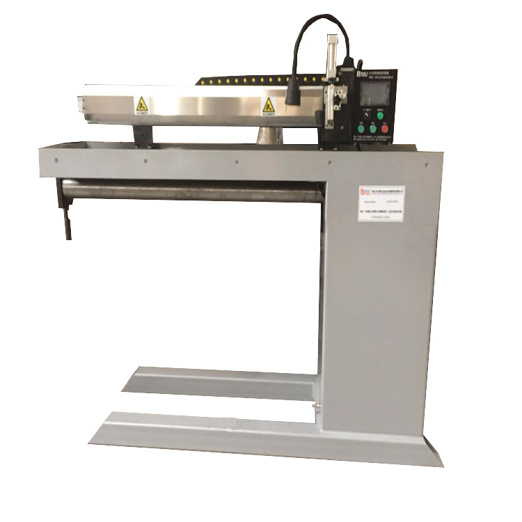 直缝焊机的介绍:采用悬臂式单立柱结构,主要由床身、气动琴键式压板夹具、横梁导轨、芯轴、电动拖板、焊枪气动升降机构、焊枪三维调节机构、气路系统和电气控制系统等组成。PLC控制准确,由行走电机驱动焊枪随直线移动拖板及导轨运动。气动琴键式压板夹具和紫铜衬垫保证压力均匀,散热均匀快速,焊缝背面成形美观。