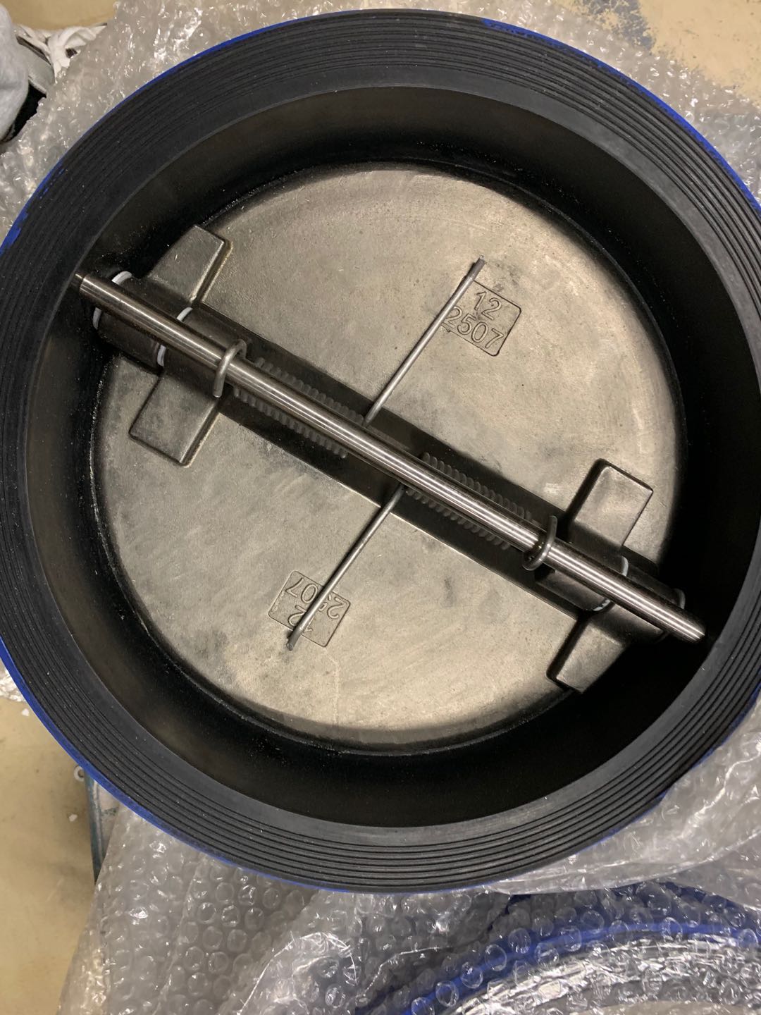 4、对夹蝶式止回阀:阀瓣沿着阀体中心线滑动的阀门。管道式止回阀是新出现的一种阀门,它的体积小,重量较轻,加工工艺性好,是止回阀发展方向之一。但流体阻力系数比旋启式止回阀略大。