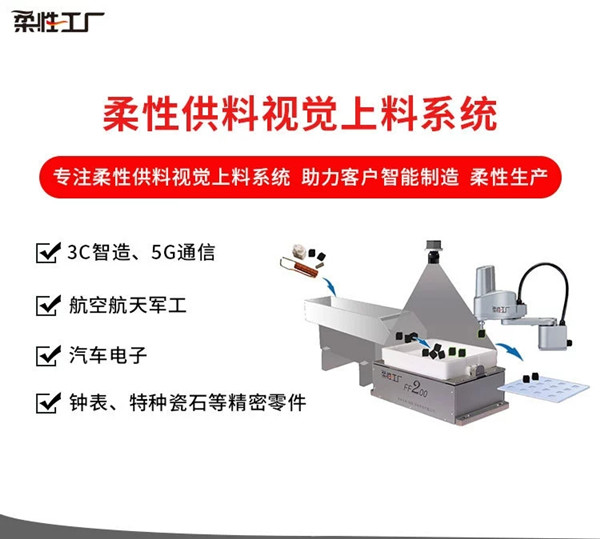 弗莱克斯(深圳)智能科技有限公司柔性振动盘结合智能CCD定位系统和机器人抓取系统,很好地解决传统振动盘解决不了的薄片类、易刮擦损伤类、异形工件上料的痛点问题,更契合当前自动化中的小批量、多品种的柔性生产需要,一键切换产品生产,更可取代大量人工进行的诸如摆盘等单调重复作业,已广泛应用于嵌件注塑、3C电子、五金、汽车电子、钟表陶瓷、电池等制造行业中。