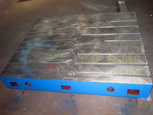 外观:铸铁平台为箱型筋板式,通常底部加强筋喷涂红色防锈漆,工作面边沿喷涂灰色油漆,边沿下部分喷涂蓝色油漆。也可以根据用户要求颜色喷涂。