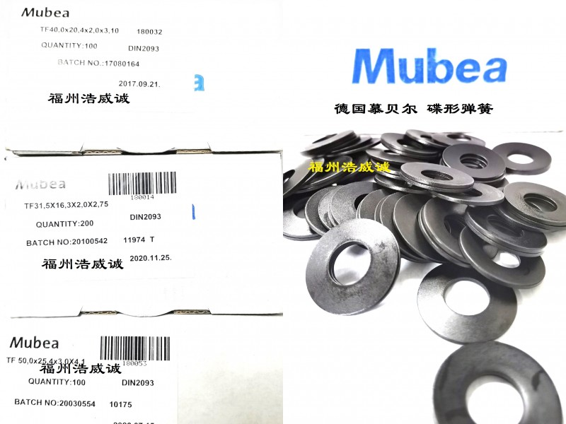 尔Mubea蝶形弹簧Mubea碟形弹簧,慕 贝尔碟簧及主轴拉杆碟簧系依据DIN 2092及DIN 2093规范所生产制造,为全球碟形弹簧知名品牌。常用规格外径