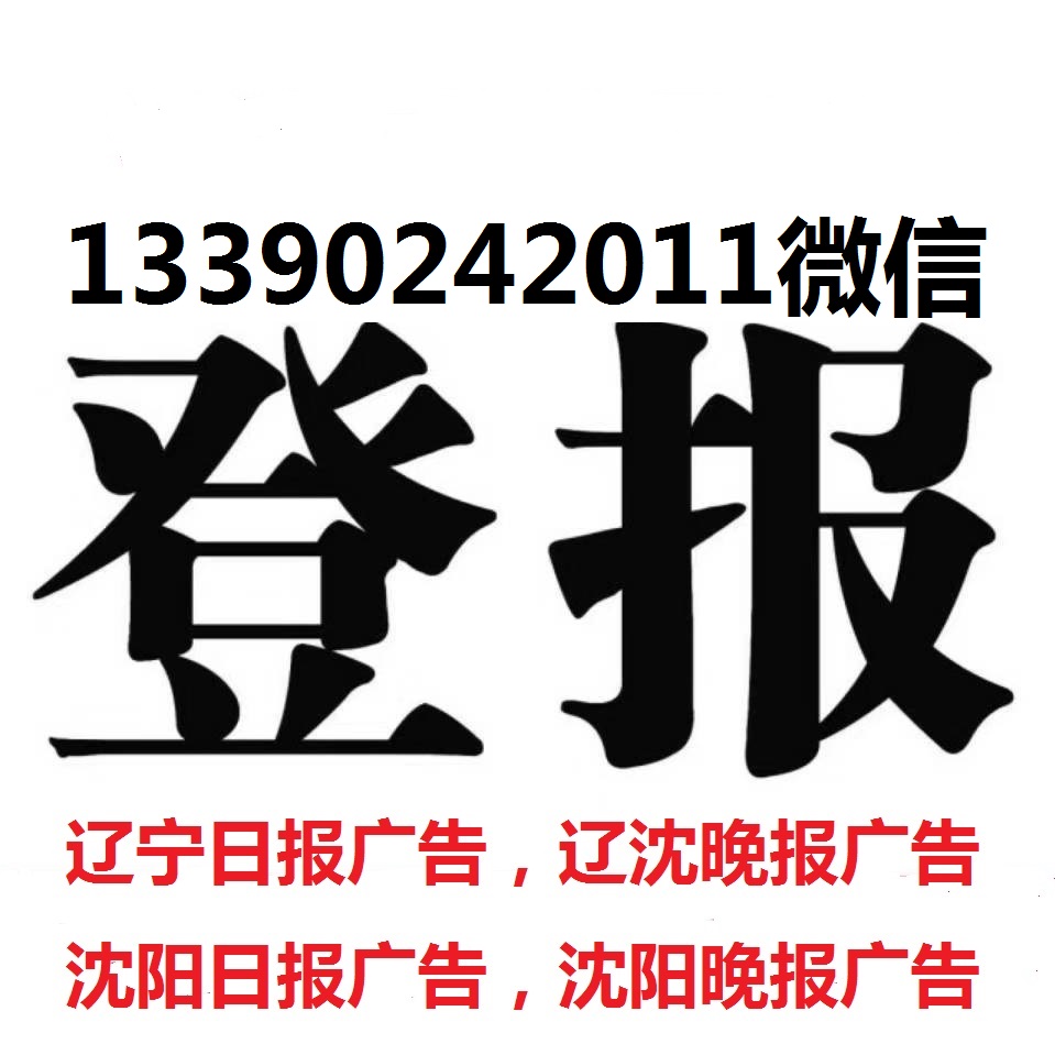 同时全面承办辽沈晚报声明广告刊登、沈阳晚报声明广告刊登、沈阳日报声明广告刊登、辽宁日报声明广告刊登、华商晨报声明广告刊登、大连日报声明广告刊登,沈阳地铁时间报,包括辽沈晚报招聘登报广告、辽沈晚报招生登报广告、辽沈晚报贷款登报广告、辽沈晚报招商登报广告、辽沈晚报房屋租售登报广告、辽沈晚报店铺出兑登报广告,辽沈晚报企业宣传登报广告、辽沈晚报拍卖公告登报广告、辽沈晚报声明公告登报广告、