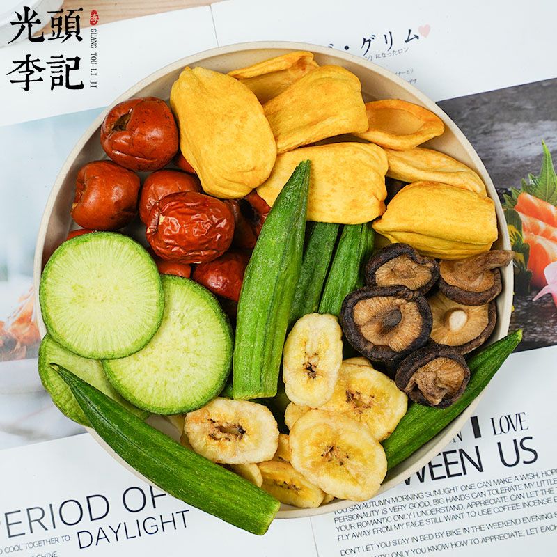 新鲜果蔬,制作成果蔬脆保存了新鲜果蔬天然的色泽、形态和风味,高颜值,香脆爽口。