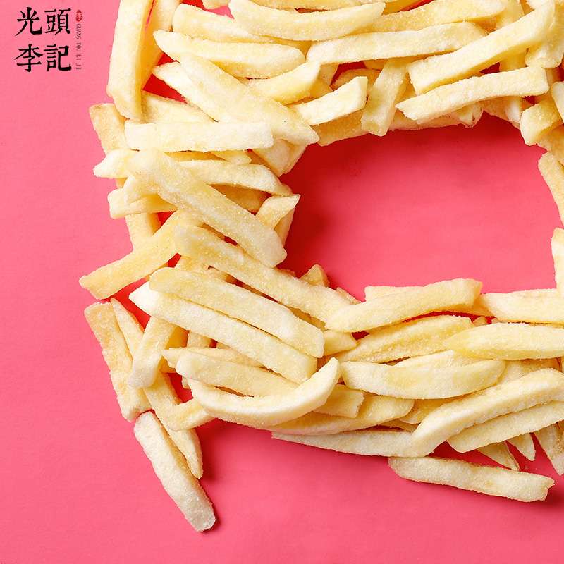 新鲜土豆,制作成土豆脆保存了新鲜土豆天然的色泽、形态和风味,高颜值,香脆爽口。