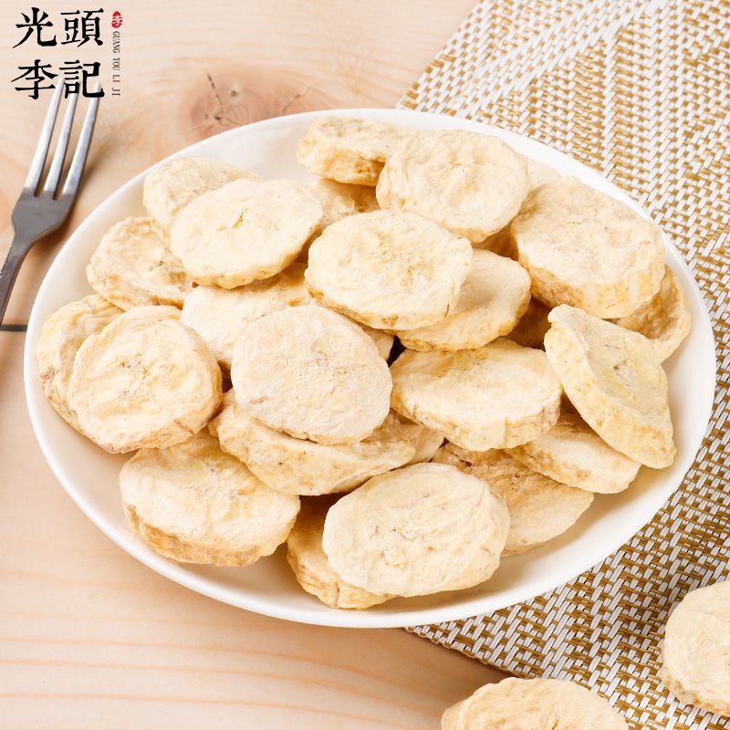 新鲜香蕉,采用FD工艺制成香蕉脆,锁住新鲜,锁住美味,使香蕉脆保持原有的色、香、味、形,原滋原味,酥脆爽口,果香四溢,齿颊留香。