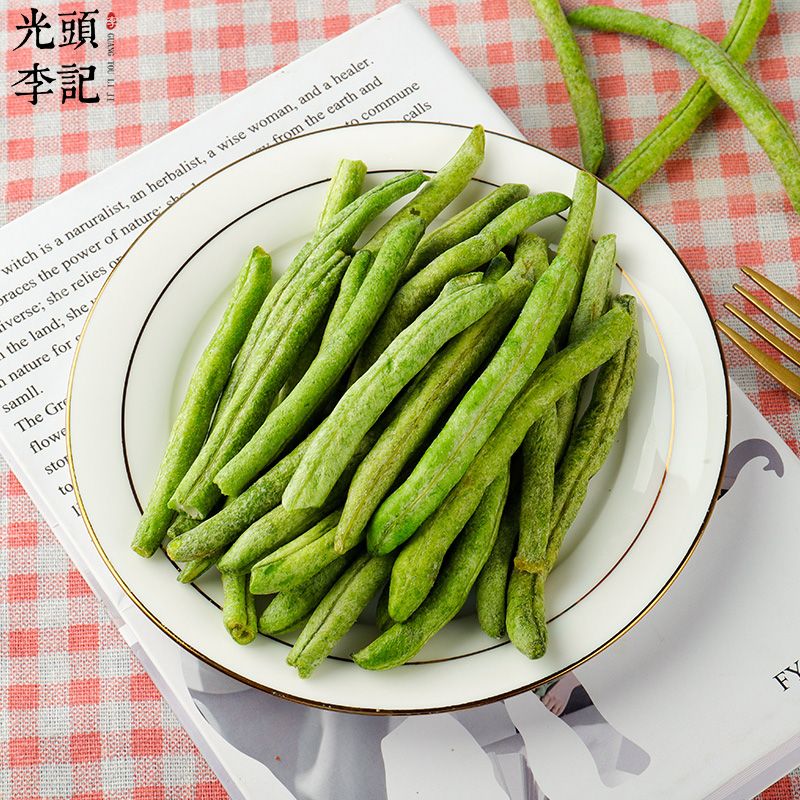新鲜青刀豆,制作成青刀豆脆保存了新鲜青刀豆天然的色泽、形态和风味,高颜值,香脆爽口。
