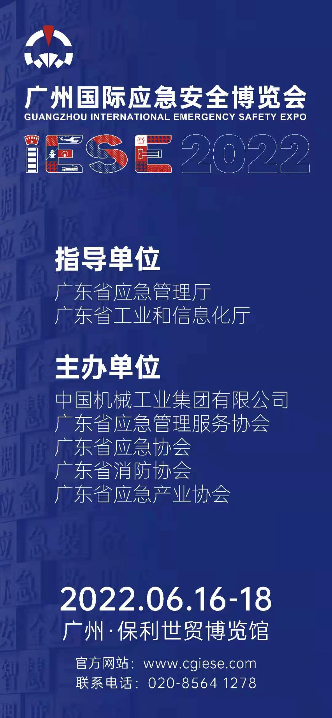 由广东省应急管理厅、广东省工业和信息化厅等部门指导,中国机械工业集团有限公司、广东省应急管理服务协会、广东省应急协会、广东省消防协会、广东省应急产业协会等机构共同组织的广州国际应急安全博览会(IESE)定于2022年6月16—18日在广州保利世贸博览中心隆重举行。