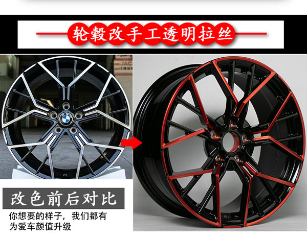 轮毂拉丝改色 轮毂拉丝改色呢分为烤漆拉丝双色,还有手工透明拉丝,拉丝的效果会让爱车整体看起来更加动感,这种改色呢当然也是按照脱漆后重新做底漆色漆在拉丝然后在上保护透明粉。