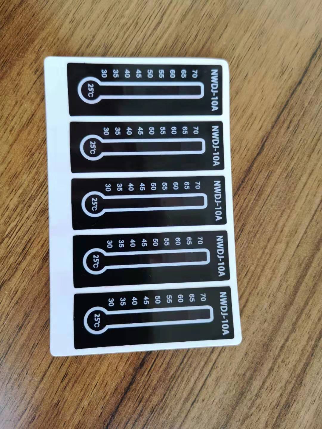 NWDJ-10A型可逆型变色温度标签具有独特的变色示温、数字显示及所变颜色可逆功能,自身带有不干胶。应用于变电所室内母线的连接部位,也可贴在母线与设备接线端子的连接处及隔离开关的触头上,还可贴在变压器、电机、电容器等电气设备的外壳上。用来监视测温部位的温度变化。一旦监测部位温度达到或超过温度标签的额定温度,变色温度标签相应的温度格将快速地由黑色变红色。很容易被巡视中的工作人员发现该部位温度升高的状况,从而找出故障隐患,防止事故的发生。如监测部位温度过高,温度标签就快速变色。监测部位温度冷却下来后,温度标签会缓缓恢复原来的颜色。该温度标签仍可继续使用。