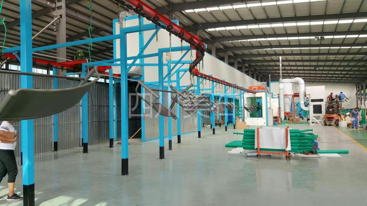 喷塑流水线主要配套设备:悬挂链输送机,不锈钢喷淋清洗剂,脱水炉,喷塑房,自动喷枪,升降机,隔离房,加热炉,固化烘干炉,废气处理设备等。
