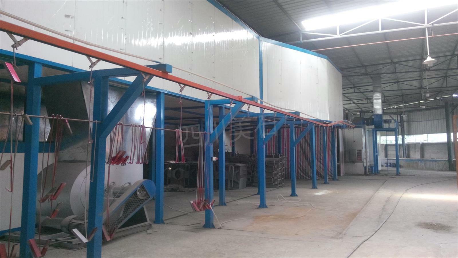 喷塑线:上喷淋前处理烘干脱水—喷塑—烘干固化20min、180℃-220℃)—冷却—下件