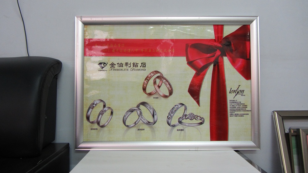 外框:开启式海报架铝型材,弹片,角码或仿不锈钢色转角