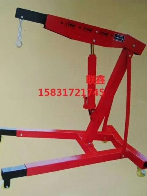 汽车发动机小吊机支架、平衡支架(2条两抓吊钩链条),平衡支架包含的辅助工具比较多,如果自己记不住怎样安装可以先看使用说明书来进行安装,安装方法很简单,汽车发动机吊机使用方法如下:1. 先要使用两抓吊钩链条分别抓住货物两侧,切记,链条抓住货物之后手一定要往上提,这样吊钩才不会松开重物,平衡支架就想扁担一样支撑着,平衡支架的作用就是保持链条平衡。2. 平衡支架工作做好之后,起升吊臂很关键,将液压手泵杆穿入到液压泵孔位中,使用液压泵杆上下压,如果自己肺活量非常好,可以加快速度进行上下压,当吊臂伸缩一定的高度之后,手推液压小吊机把货物放在车内