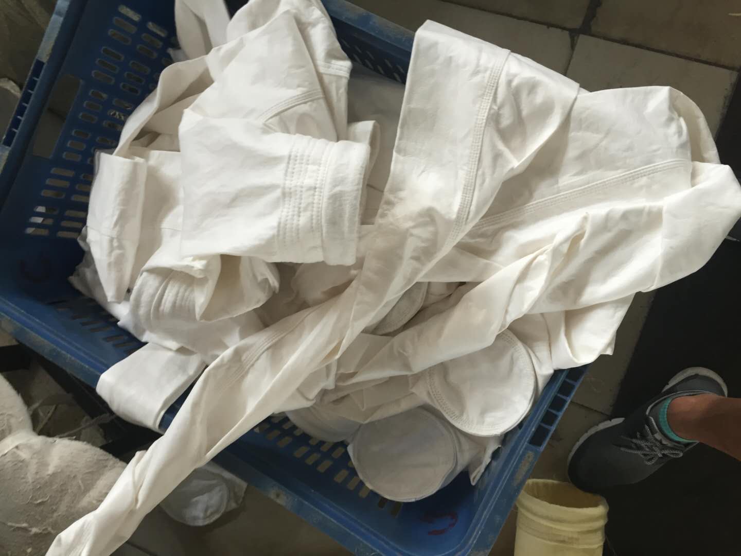 5、除尘器布袋筛选:将逐个检测布袋的破损情况,将破碎的除尘器布袋挑选出来,将好的除尘器布袋整理打包。