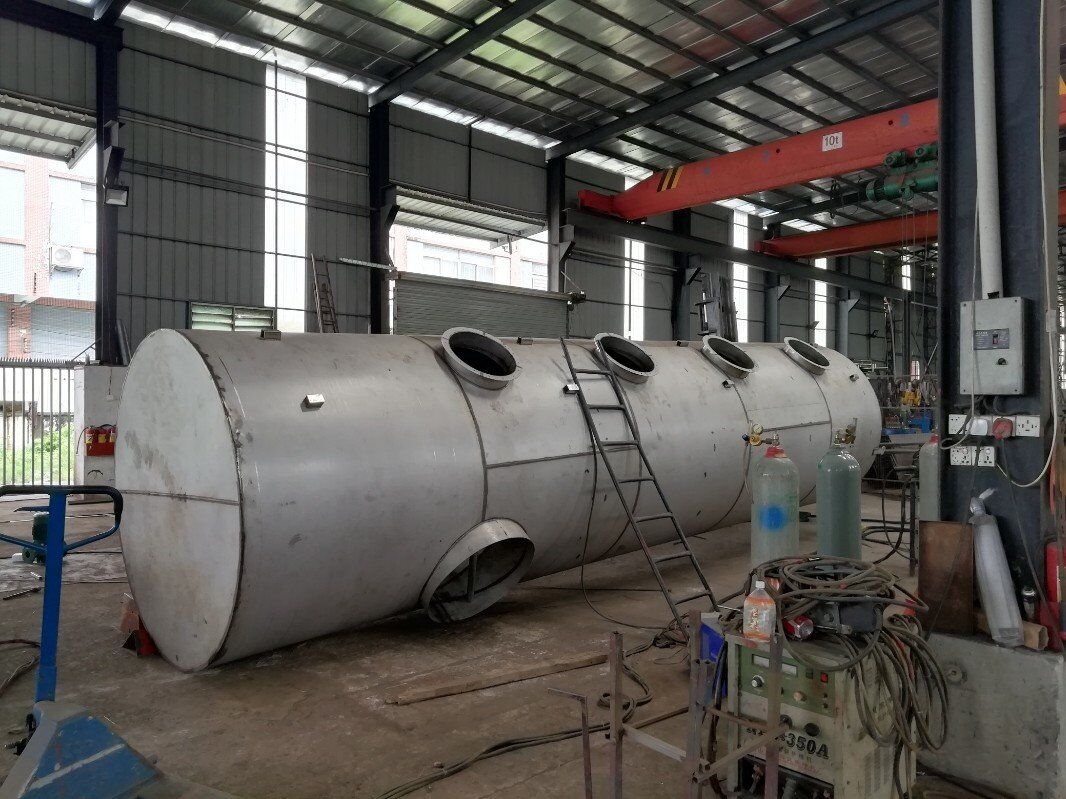 不锈钢废气脱硫塔的结构采用喷雾塔填料层作为气液两相接触元件的传质设备。填料支撑板设置在填料塔底部,填料以堆叠方式排列在支撑板上。填料压力板安装在填料上方,以防止向上气流吹出。喷雾塔从塔顶喷出液体,通过液体分布器到达填料,并沿填料表面向下流动。气体从塔底分布后,液体通过填料层的空隙连续逆流。在填料表面,气液两相紧密接触,进行传质。当液体沿填料层流动时,有时会有壁面流动。壁面流动效应导致气液两相在填料层中的分布不均匀,导致传质效率下降。因此,将喷雾塔中的填料层分成两部分,中间设置有再分配装置,再分配后再喷洒到下部填料上。