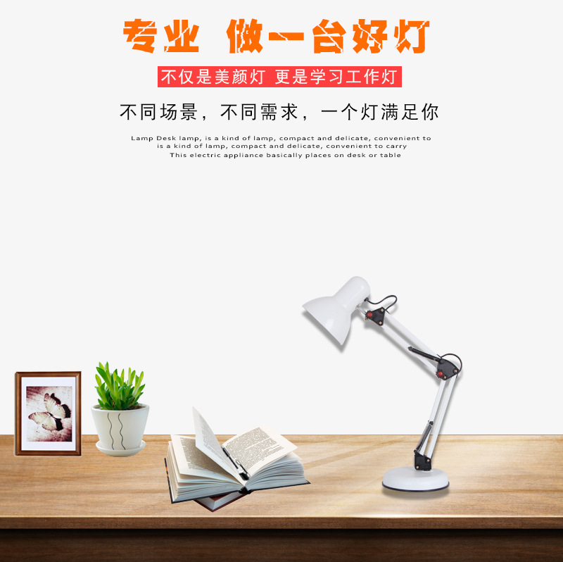 阅读台灯,灯体外形简洁轻便,是指专门用来看书写字的台灯,这种台灯一般可以调整灯杆的高度、光照的方向和亮度,主要是照明阅读功能。