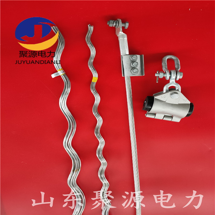 五、护线条预绞丝:按预定的机械性能与化学成分定做的铝合金线材,具有很高的抗拉强度、硬度和良好的弹性以及极强的防锈能力,能在恶劣的气候环境下长期使用。