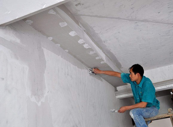 4、修整表面:以批土刀将腻子粉填平凹洞裂缝,等到完全干燥后,再用砂纸磨平。