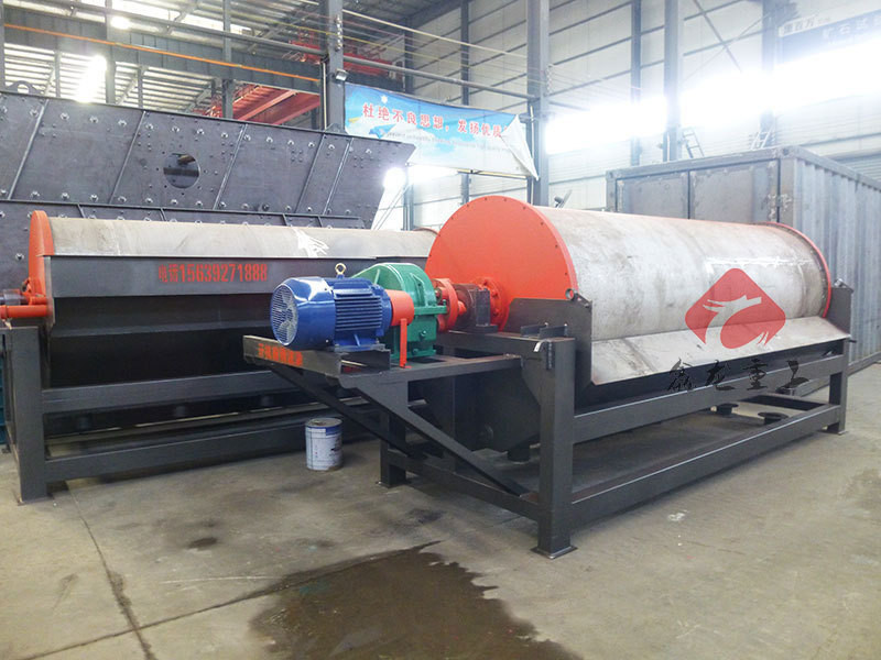 矿浆由给矿箱直接进入到圆筒的下方,非磁性矿粒和磁性很弱的矿粒有圆筒下方的两底之间的间隙排出。磁性矿粒吸在圆筒表面上,随着圆筒一起旋转到磁系边缘的磁场弱处,由卸矿水管将其卸到精矿槽中。顺流型磁选机结构简单,处理能力大,也可以多台串联使用,适用于选分粒度为0~6mm的粗粒强磁性矿石的粗选和细选作业,或用于回收磁性种介质。顺流型磁选机的选别指标,受给矿量的影响很大,反应灵敏。当给矿量大时,磁性矿粒容易损失于尾矿中,因此借助特殊装置-排矿调节阀,控制矿浆水平面,使之保持在低的水平上,要加强操作,若调节不及时会造成尾矿品位增高。
