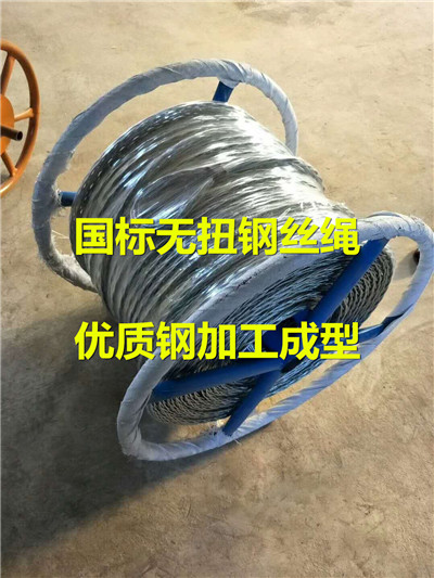 防扭钢丝绳加工米数一般为整数,100米,200米,300米,500米等等,再钢丝绳两头需要人工编套,在施工的过程中一头连接电缆网套,另外一头连接汽油或者柴油绞磨机。一般常用的钢丝绳材质为普通钢材质,优质的产品往往采用合金钢材质加工制作而成,但是其成本会很高。我厂主要生产电力电缆工具:机动绞磨机,铝卡头,放线滑轮,铝合金立杆机,电线杆脚扣,液压放线架。防扭钢丝绳参数及报价 无扭钢丝绳厂家及规格。