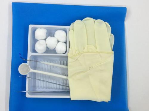 一次性使用无菌口腔包由基本配置托盘、一次性使用口镜和可选配置一次性使用牙探针、一次性使用镊子、医用棉球、卫生纸、一次性医用中单、一次性使用包布、围裙、一次性使用聚乙烯检查手套、检查手套、脱脂纱布块、塑料袋、口杯、止血钳、吸管、一次性使用压舌板、一次性使用治疗巾、医用钳组成。