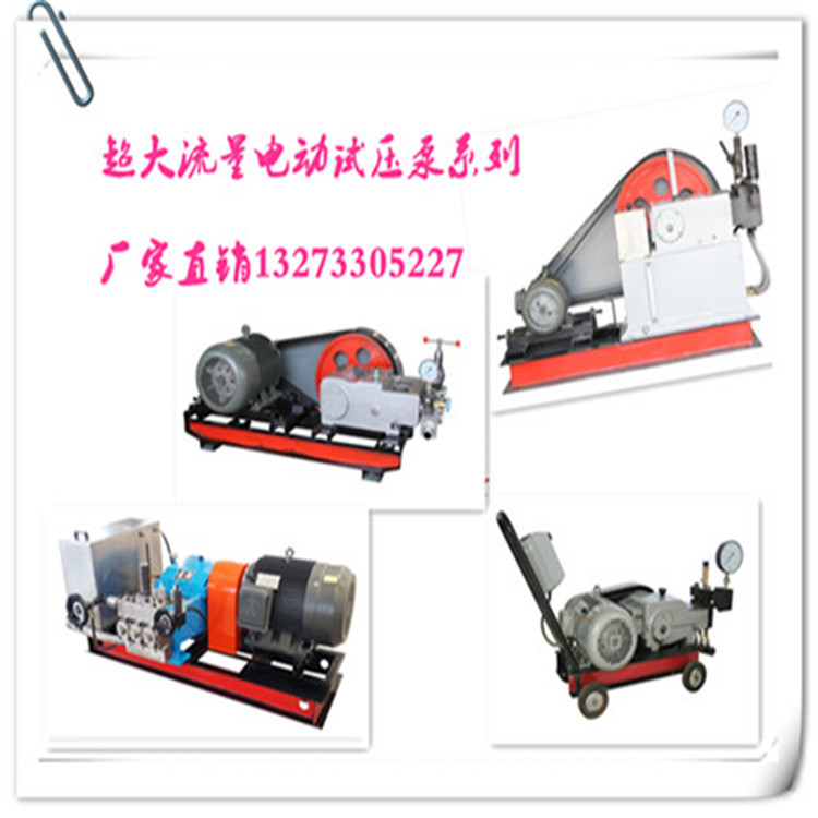如果用户想要买大流量试压泵,可以参考我公司的3DSY-S40系列电动试压泵,该系列试压泵是在高压大流量试压泵的基础上,经过改进而扩展设计的,该系列试压泵不但有结构紧凑、安全可靠、流量大、效率高、高压力覆盖范围宽等特点,而且适用范围广、配套性强、操作简单、移动方便。该系列试压泵可以采用电机或者柴油机等作为动力源,适合室内外或野外无电源的地方作业。