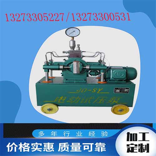 手动试压泵怎样操作1.试压泵开始使用前应详细检查各部件连接处是否拧紧,压力表是否正常,进出水管是否安装好,本泵工作介质为5~50℃清水、乳化液或运动粘度<45mm2/s的油器。禁止使用有泥沙及其它污杂物的不清洁水。