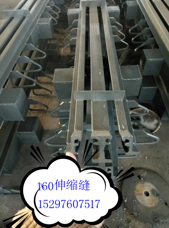 4.桥梁伸缩缝 直销重庆D60型/80型/160型模数式桥梁伸缩缝就位:安装前用吊车吊运时,应检查好吊车的吊钩,防止脱钩,吊装时应严格按照厂家预留的吊位进行吊装,并按照设计图纸绑轧钢筋。在固定过程中采用拉线的方法控制伸缩装置的中线和直顺度,用长度大于3m具有足够刚度的工字钢或铝合金钢搭放在伸缩缝两侧来控制高程。工字钢沿垂直伸缩缝的方向以 1m间距放置,并与缝两侧路面压紧,用木楔将伸缩缝型钢垫平,然后用3m直尺配合自制小门架逐段精确调平,调平过程中应采用钢楔。伸缩缝就位后,应调整伸缩缝的中线及标高,标高根据缝两侧 5m范围内的实测路面标高确定。