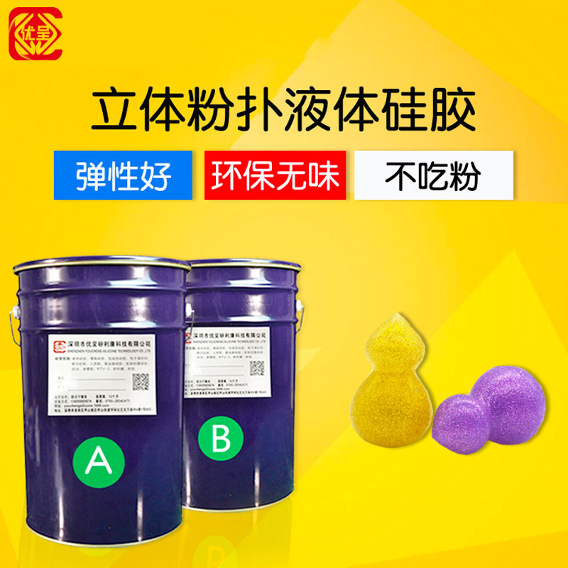 粉扑液体硅胶,双组分粉扑液体硅胶。由两部分组成:A组分是硅胶,B组分是固化剂;两组分按1:1的比例混合配比,是一款通过了欧洲食品级认证的硅胶。